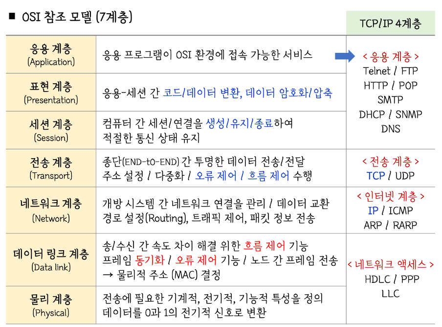 A. TCP: 신뢰성, 연결 확인(3-way handshake) / UDP: 빠르지만 비신뢰성