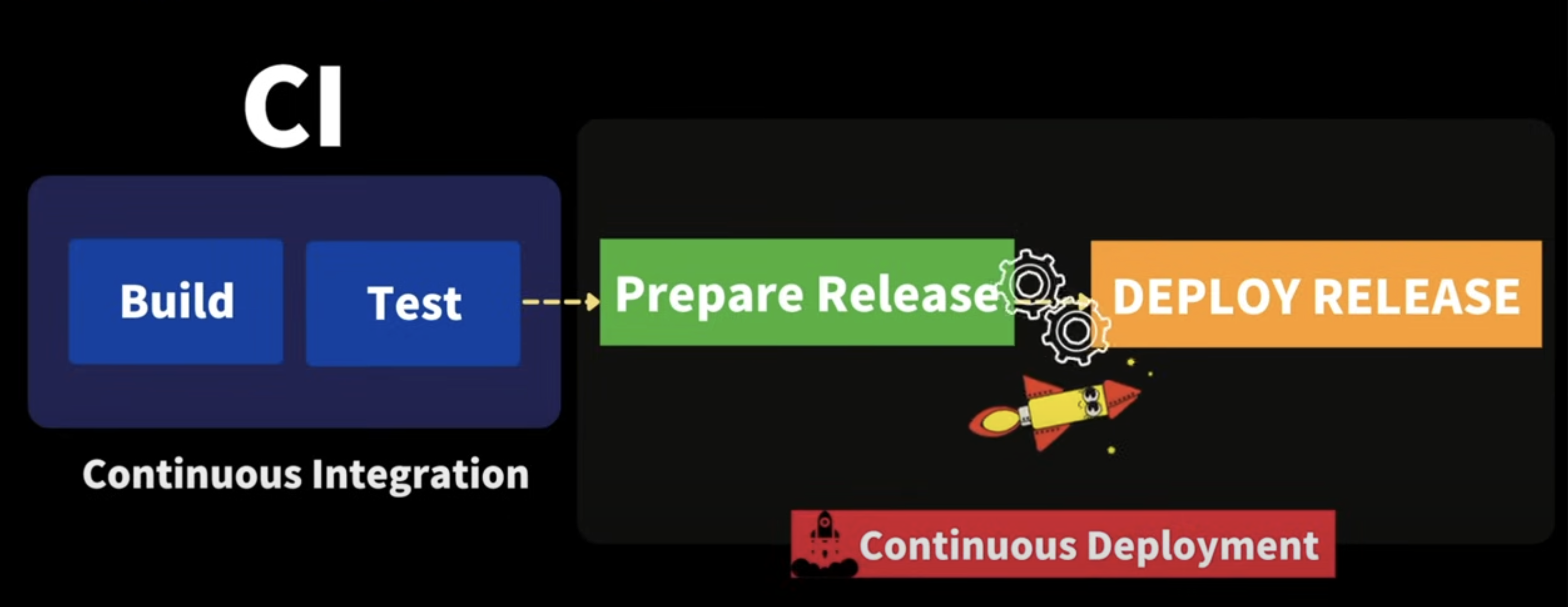 CI 이후의 프로세스인 배포 단계까지 포함한 자동화 프로세스.