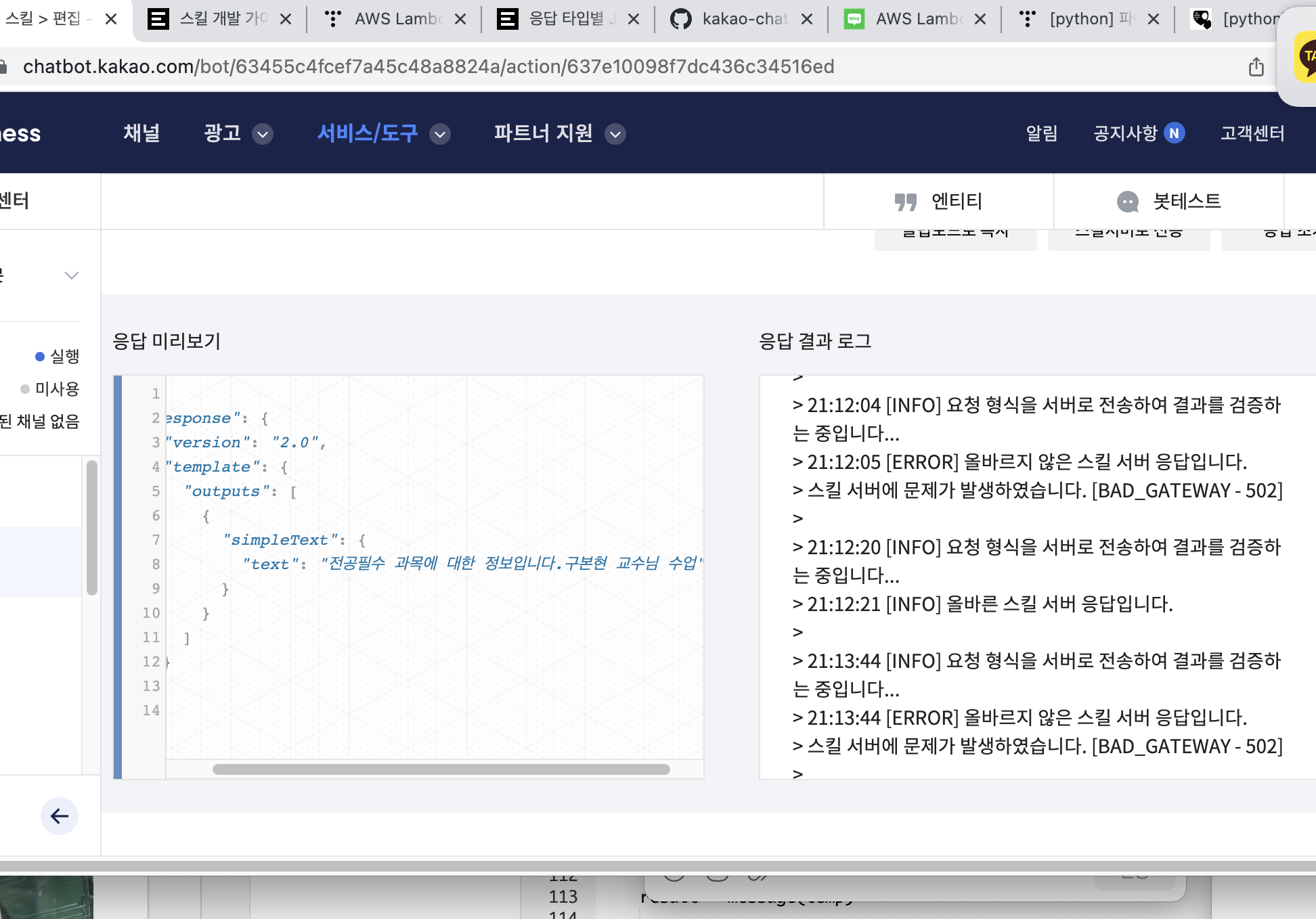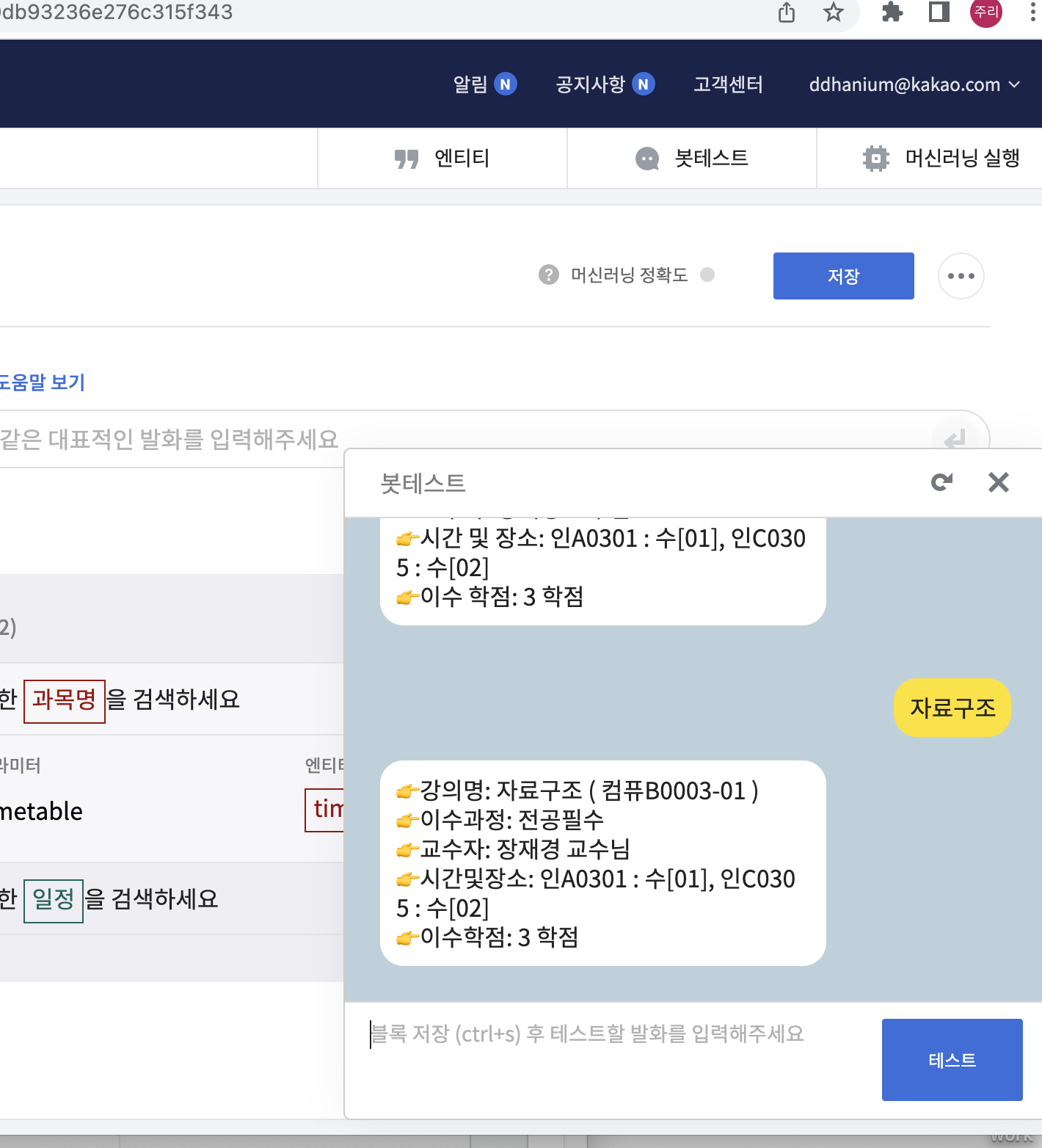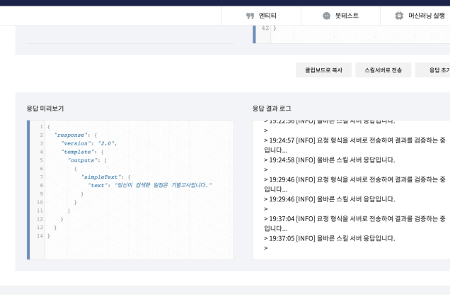 -응답 미리보기에서는 나오는데 봇테스트에서는 안나온다