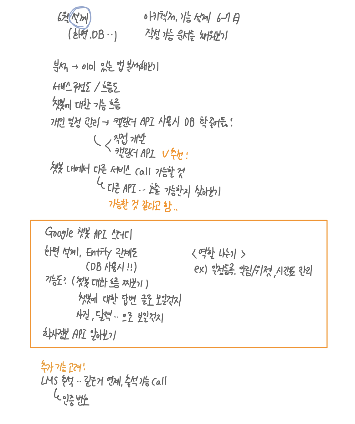 클라우드가 변경됨에 따라 그동안 챗봇스터디를 처음부터 다시 시작해야했기에 기존 자체 앱 제작을 하면 개인일정을 정리할 수 있다는 장점이 존재하지만 앱을 제작하기에는 개발소요시간을 생각했을때 개발질이 떨어질 수 있을 거라는 문제점이 생겼다.