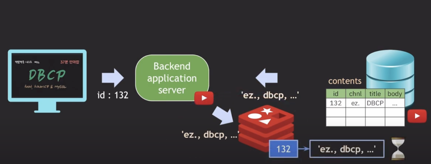 Redis는 in-memory 기반의 DB이고 memory의 응답성이 ssd, hdd보다 빠르기 때문에 DB 앞단에 Redis를 두어 cache로 많이 사용합니다. Redis를 Cache로 사용하면 DB 서버 혼자서 모든 트래픽을 처리하지 않아도 됩니다. Redis는 메모리 기반이므로 빠른 응답성을 제공하며 캐시 역할을 하여 DB 서버의 부하를 줄여줍니다. 많은 트래픽을 처리할 수 있으며 응답 시간이 개선됩니다.