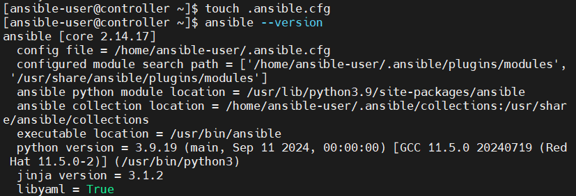 기본적으로 구성 파일은 /etc/ansible/ansible.cfg에 위치하지만, 일반적으로 프로젝트별 작업 디렉토리를 생성해 해당 디렉토리에서 구성 파일을 관리합니다.