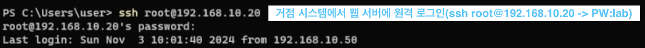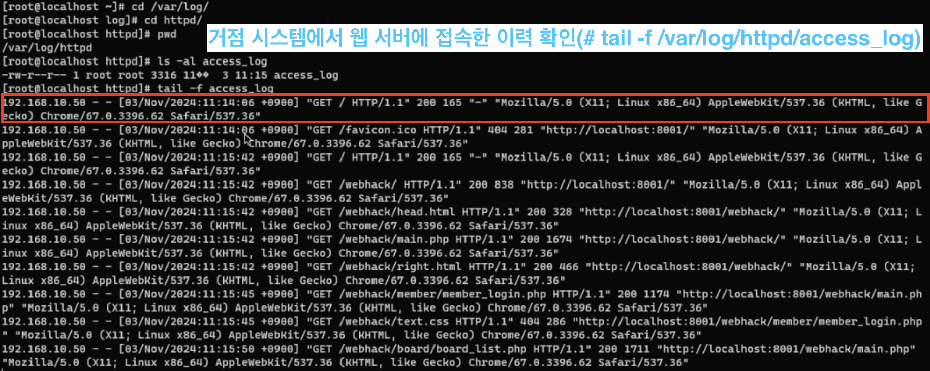 - 물론 해당 웹 서버에서도 웹 로그를 살펴보면 거점시스템이 접속한 것으로 확인될 것입니다.