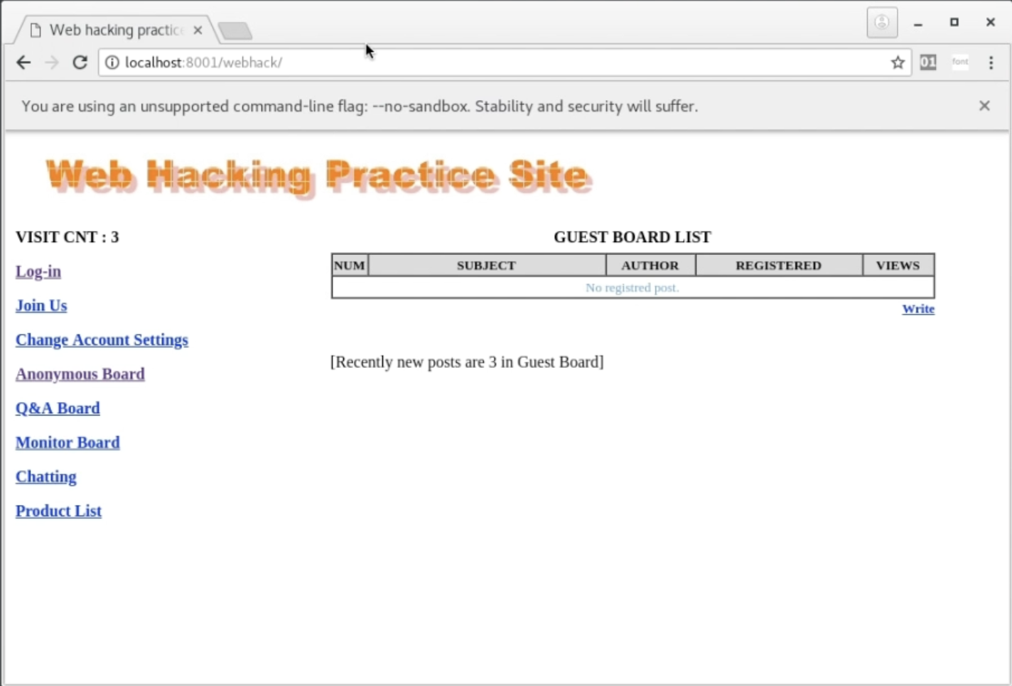 - 공격자 시스템에서 브라우저를 실행한 후 수신 대기 중인 포트(본 실습에서는 8001번 포트)로 접속을 시도해봅니다.