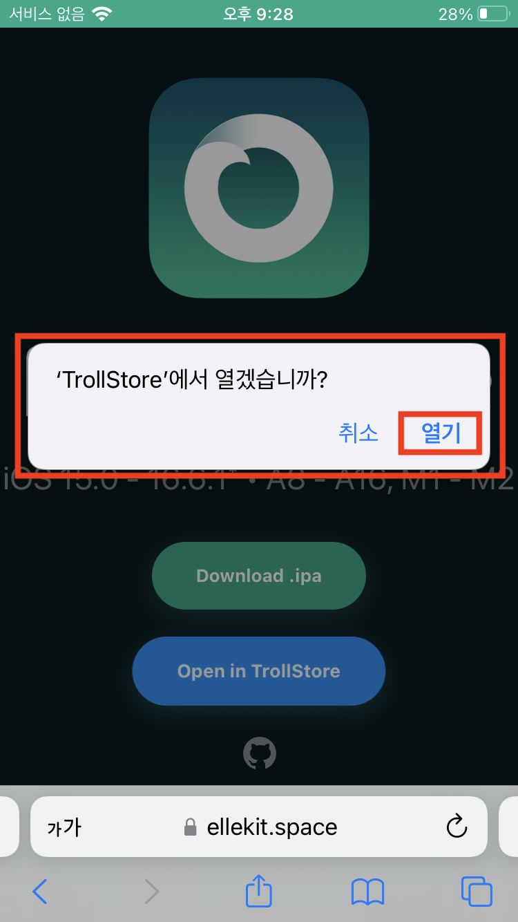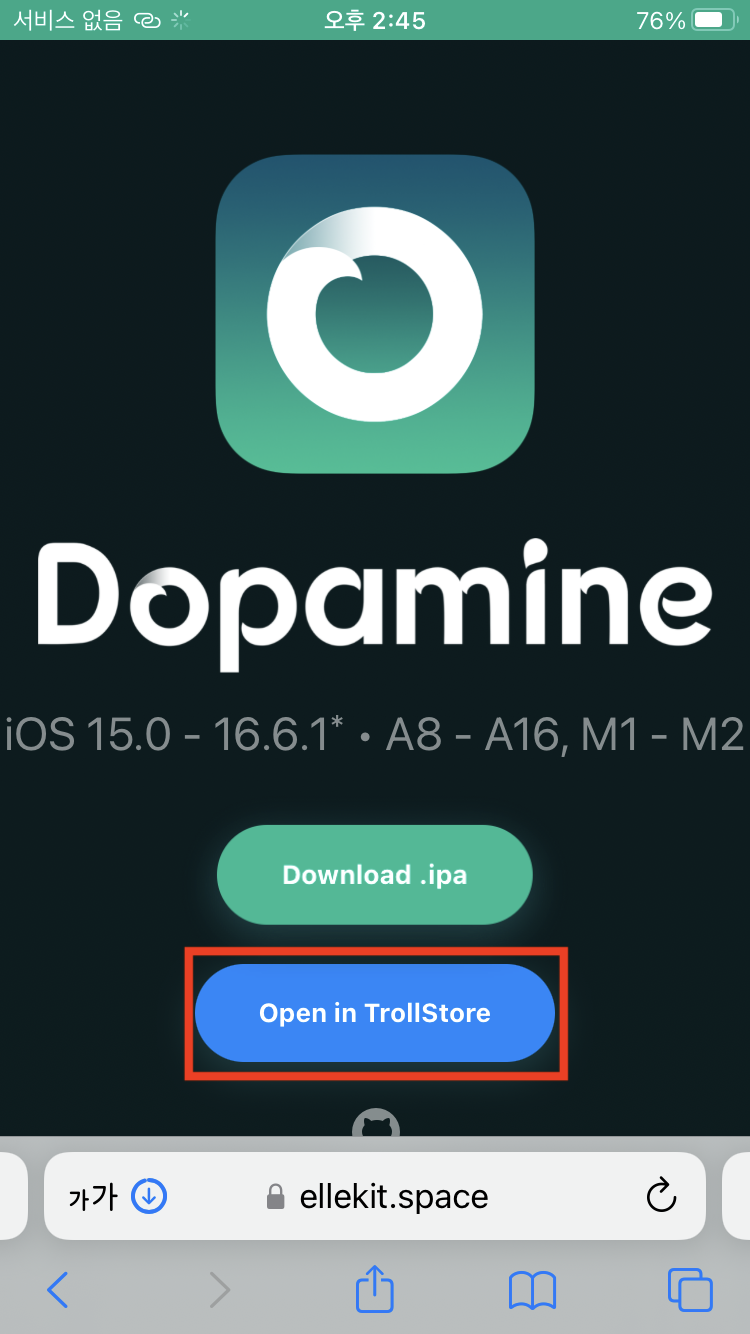 1) TrollInstallerX에 접근하여 TrollStore를 설치해 준다.