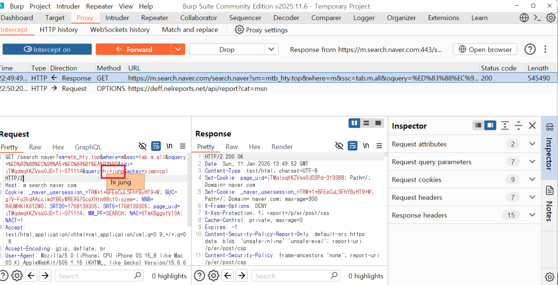 8) Burp에 패킷이 잡힌다.