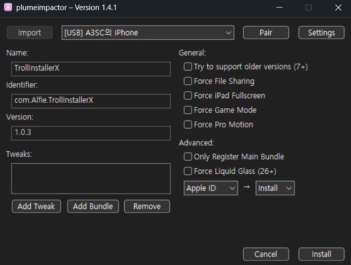 4) TrollStore 설치한다.