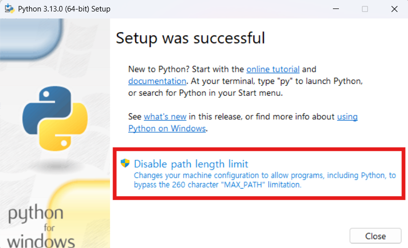- Disale path length limit 선택