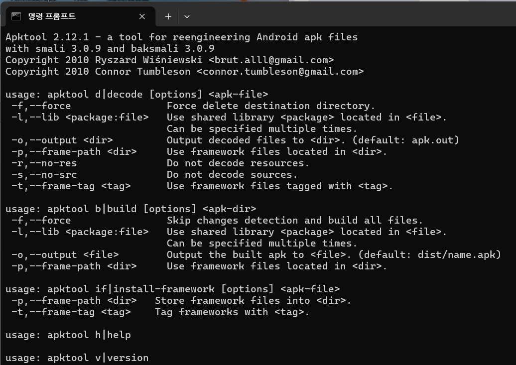 간단한 Apktool 설명, 설치, 사용 방법 (안드로이드 앱 분석)