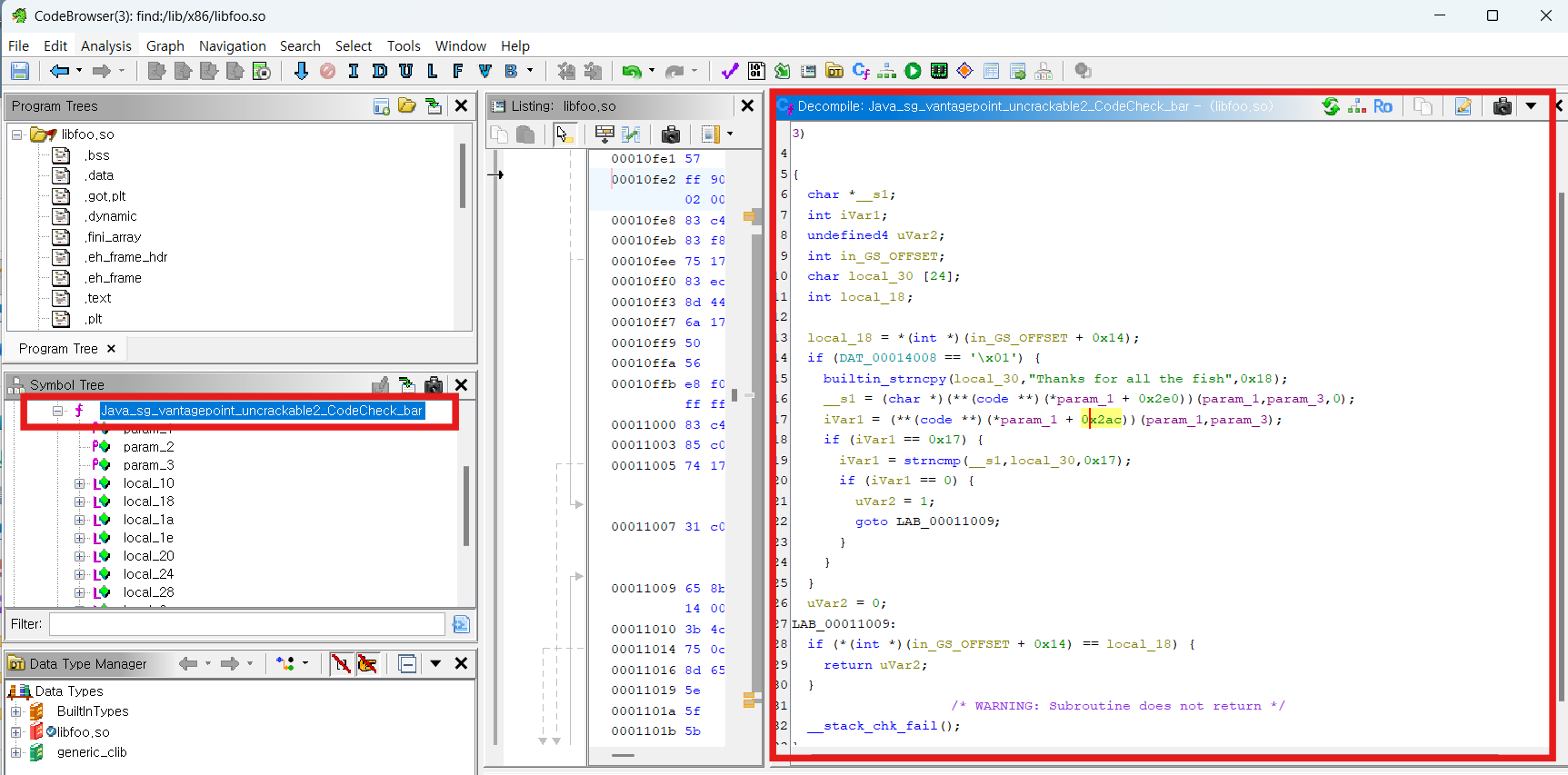 key를 알아내기 위해 Decompile된 파일을 살펴보니 Thanks for all the fish와 문자열이 같으면 된다.