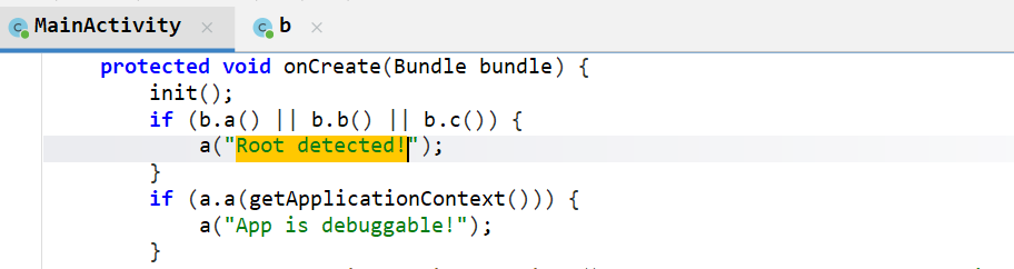 Root detected 알림창을 제거하기 위해 조건문을 false로 바꿈