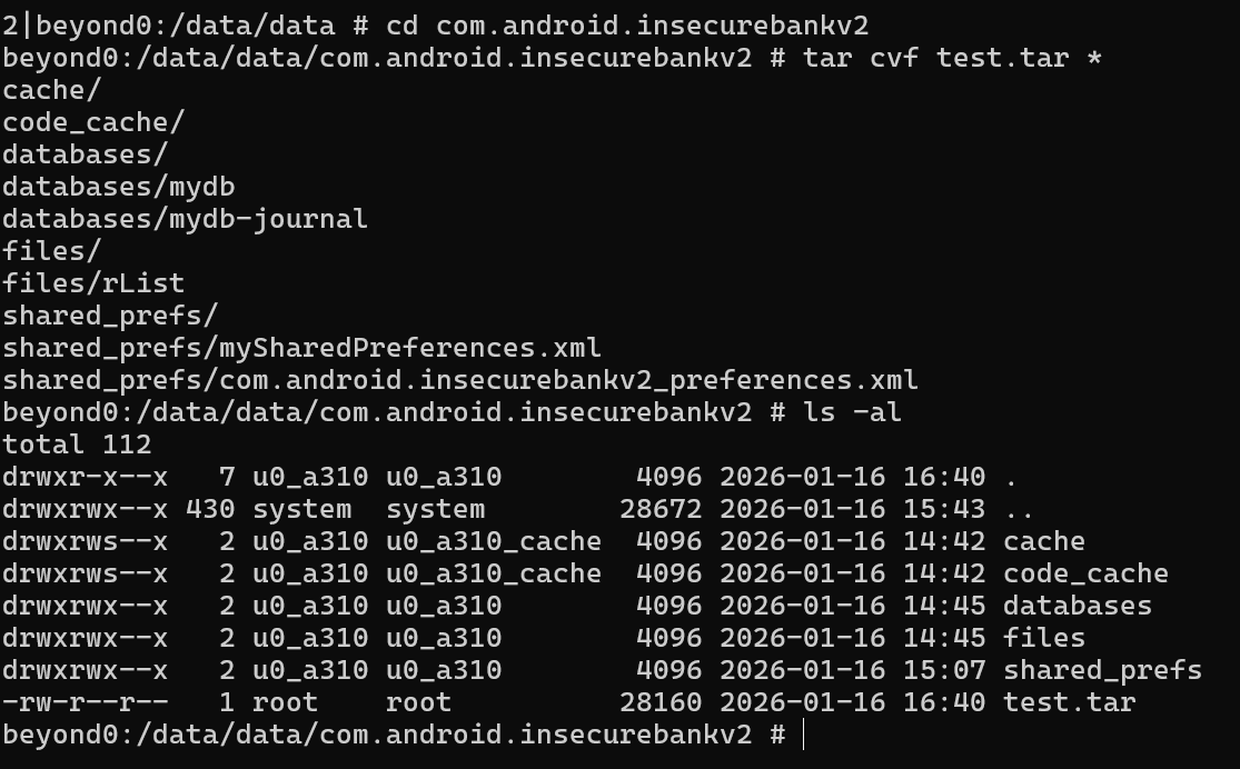 ls -al //com.android.insecurebankv2 파일 경로 확인