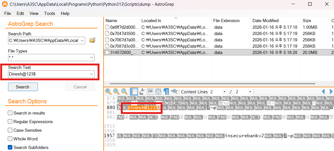 AstroGrep에서 비밀번호를 검색