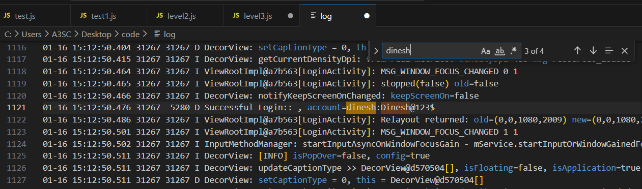 노트패드나 vscode를 사용해서 Ctrl+F로 찾기