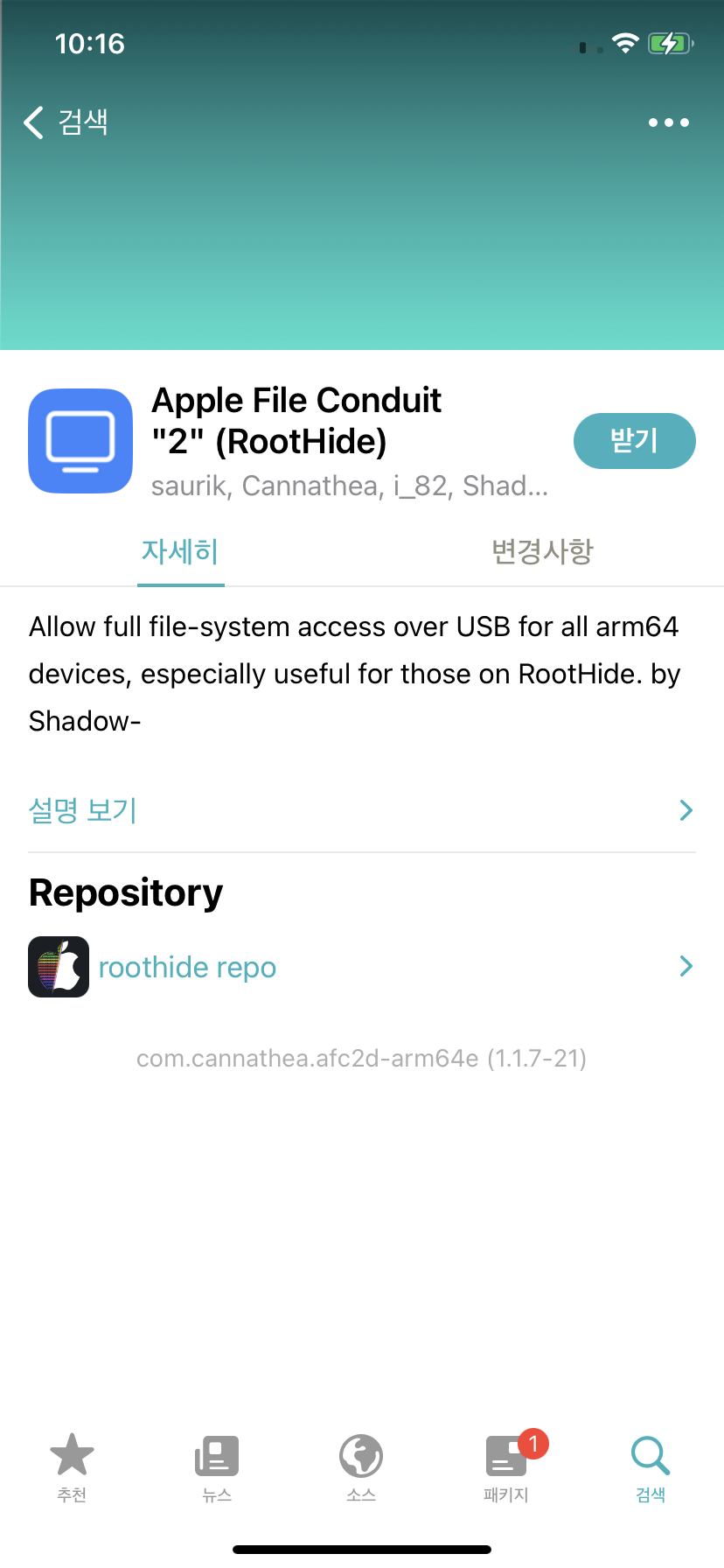 - Sileo에 들어가 Apple File Conduit "2"(Roothide)를 다운로드